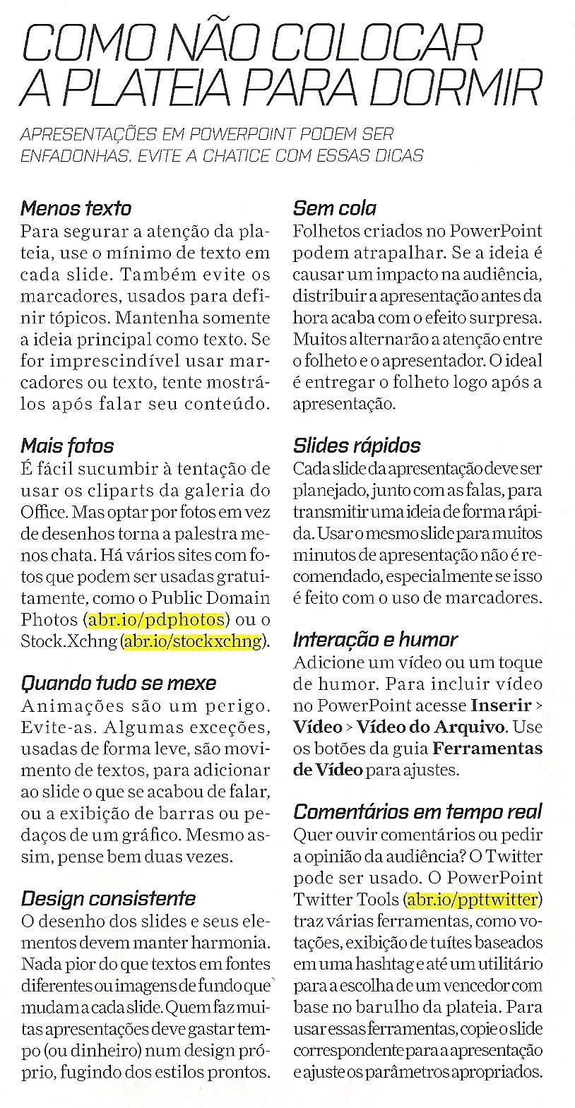 Saiu na Revista Info Exame deste mês (agosto de 2011), com a devida colaboração da Casulo, agência especializada em Apresentações Empresariais: “Como não colocar a plateia para dormir”